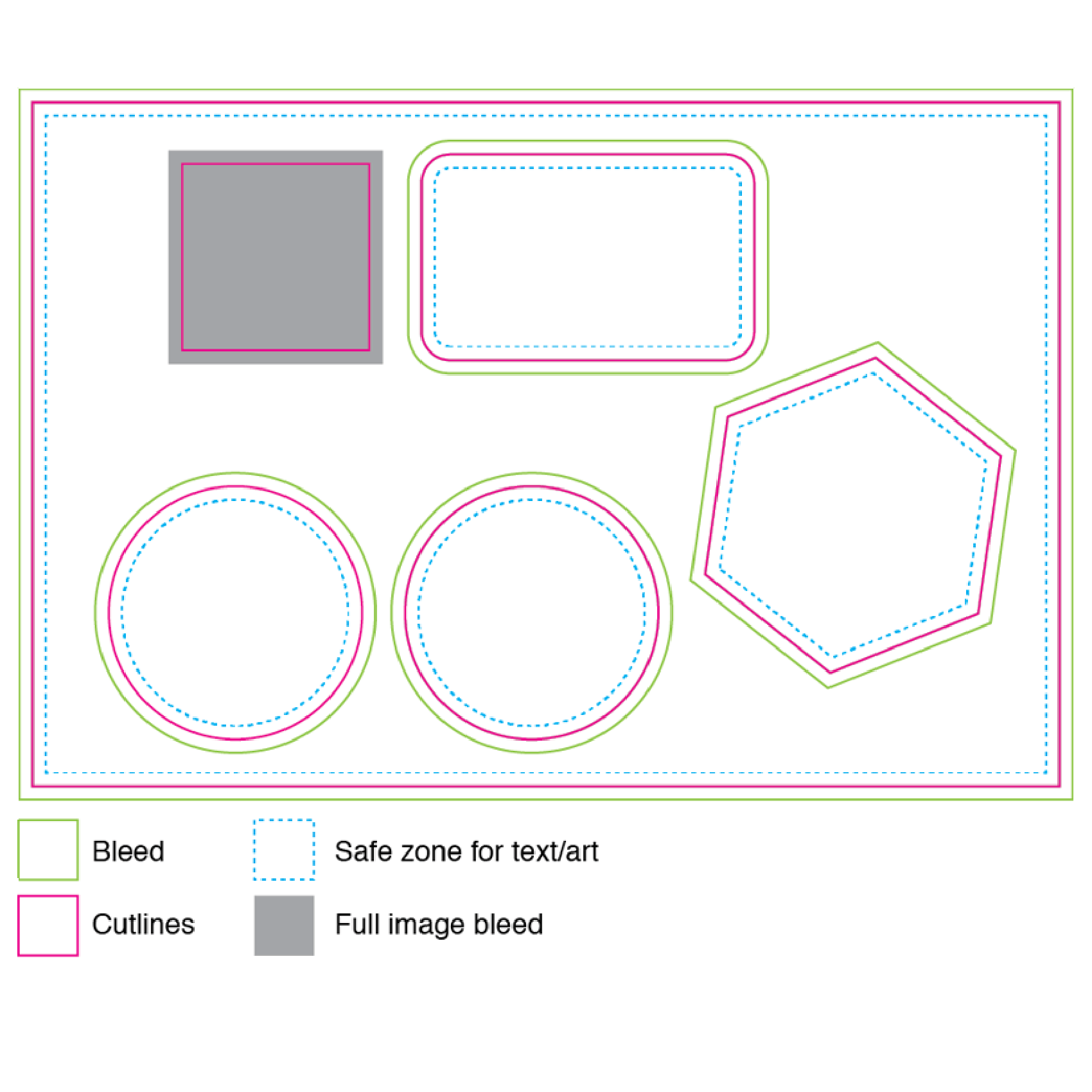 • Your cutline should sit 0.076”/2 mm outside your artwork. If you’re looking to print stickers without borders, stretch the design 0.076”/2 mm past the cutline.