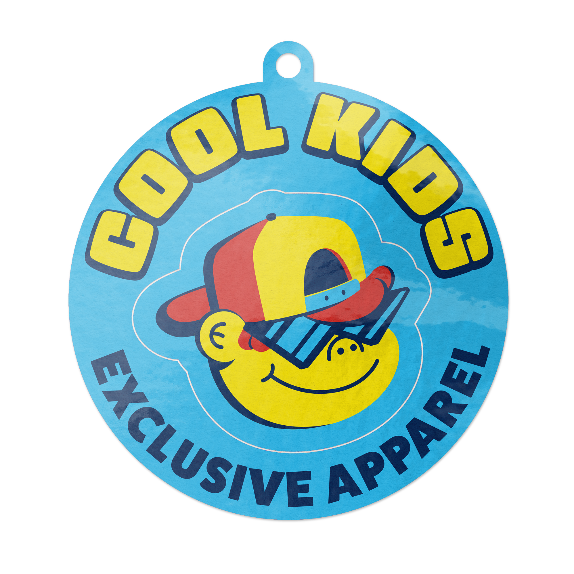 Two functions, one design. A hang tag that doubles as a branded sticker.