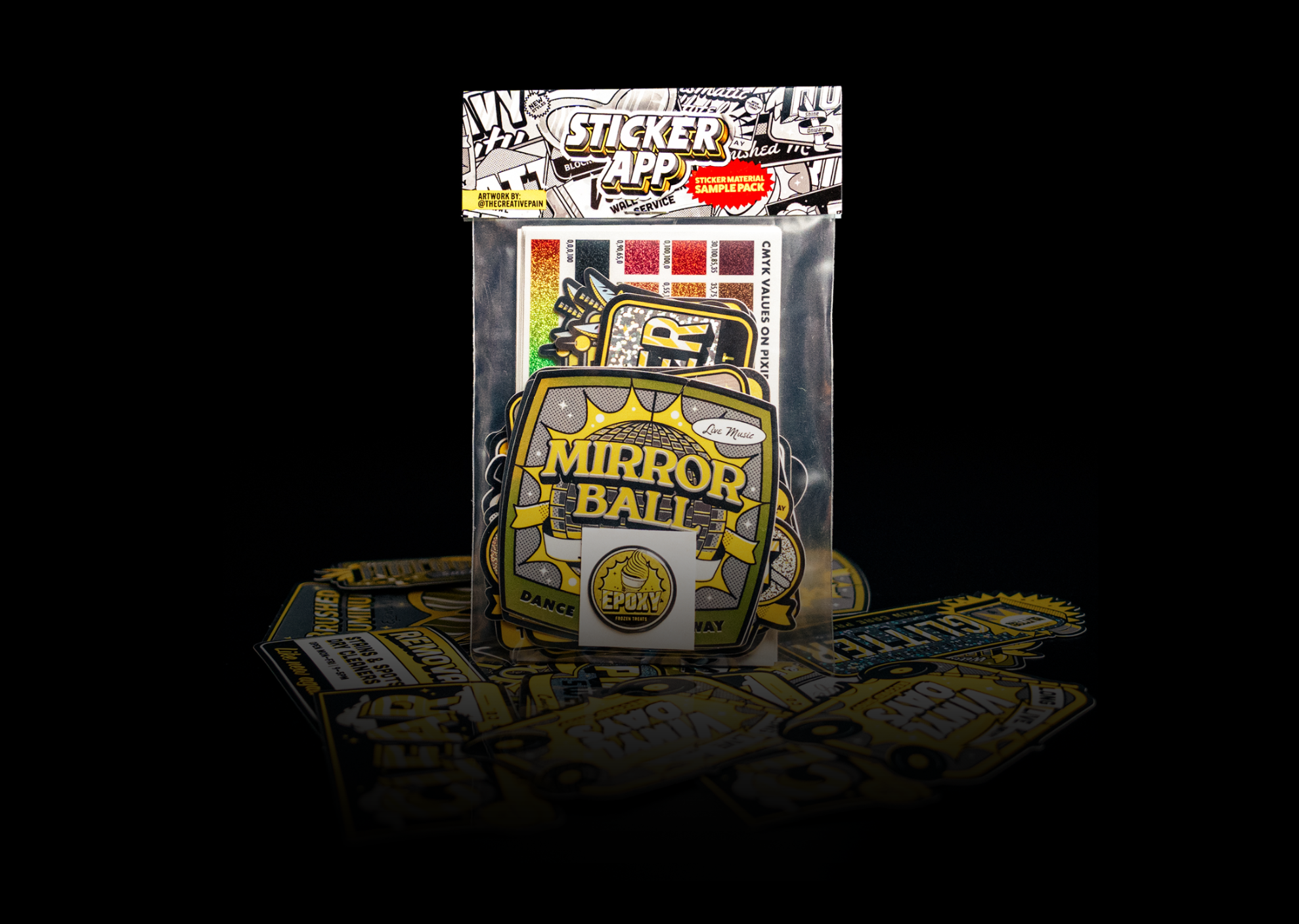 Your sticker pack will include your stickers packed in a plastic bag that fits your biggest sticker, along with a matching-sized header card.
